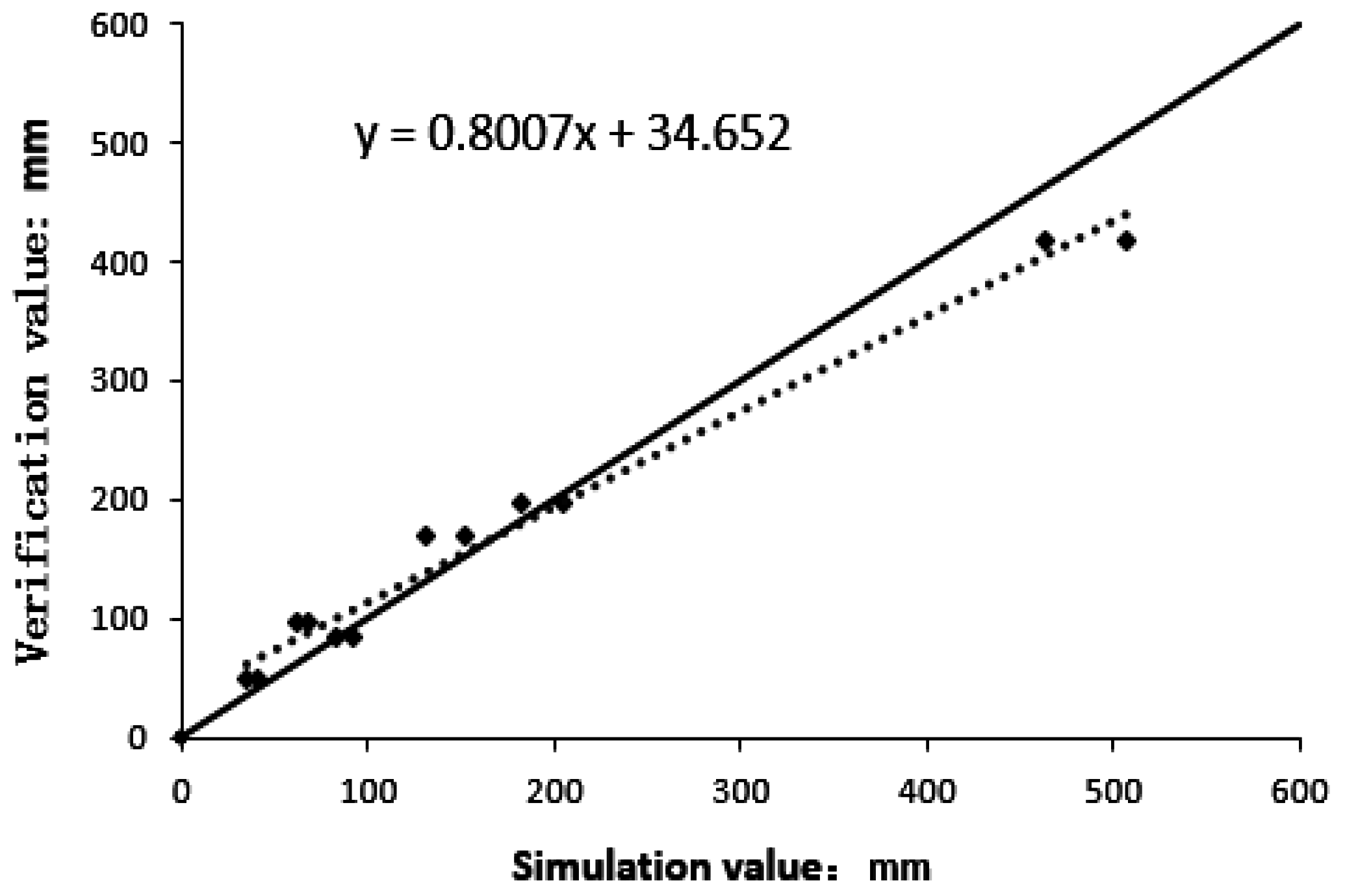 Simulation and verification values. Unit: mm.