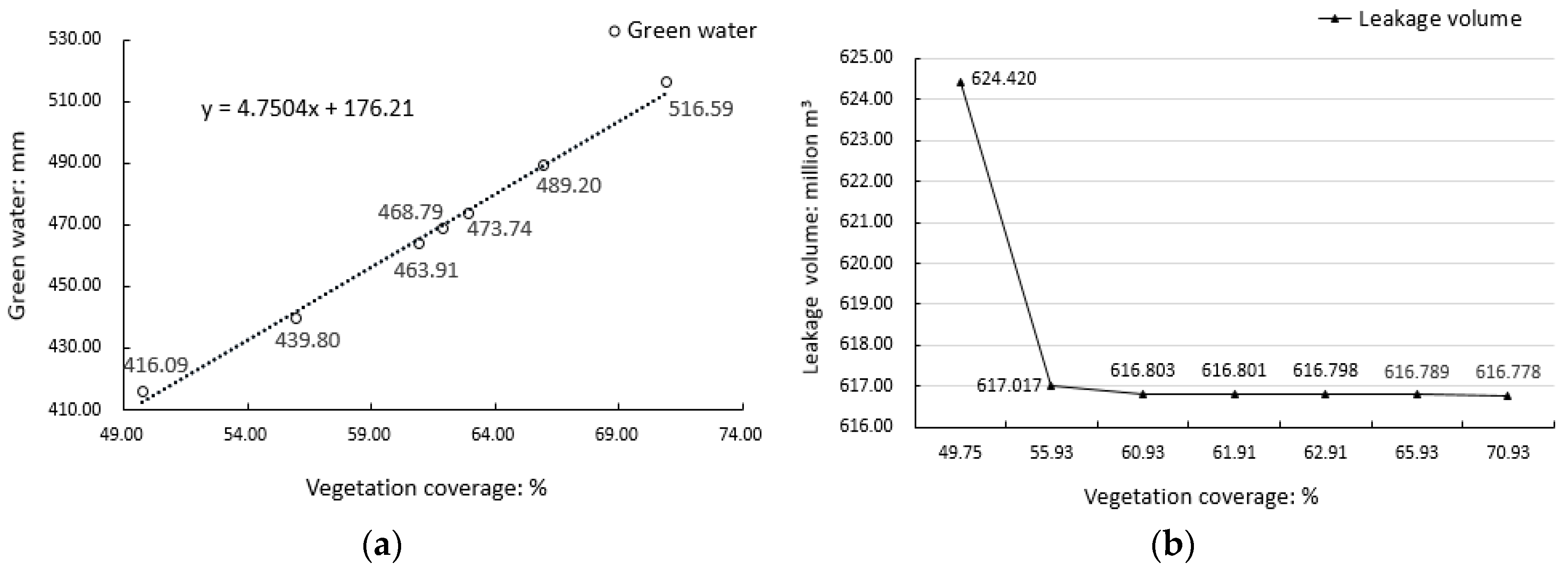 - When precipitation is unchanged, the increase of vegetation coverage leads to a trend of decrease of leakage.