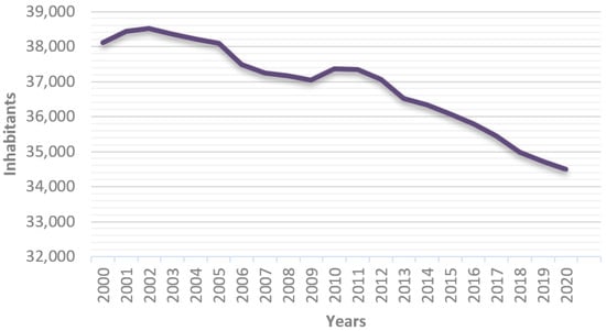 Over the last century, according to data from the National Institute of Statistics of Spain (NIS), the demographic evolution of the Valle del Jerte-La Vera territory, on par with the rest of Extremadura, has not been positive. Figure 4 shows how the total population of the territory has lost more than 3600 inhabitants over the last 20 years, with a slight stagnation in 2010 and 2011.