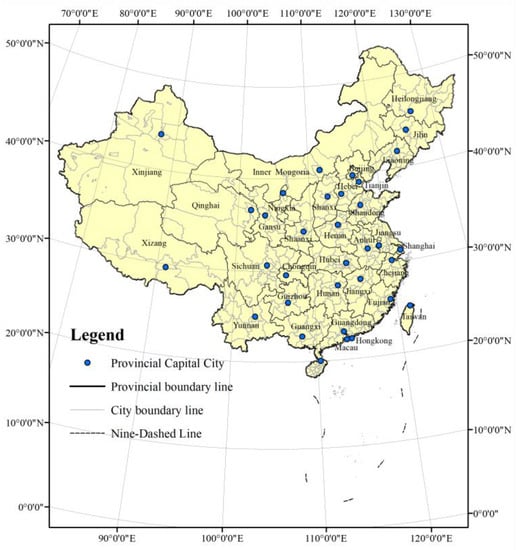 This article mainly discusses the spatial distribution and determinants of LGEs in China on the scale of prefecture-level cities. There are 333 prefecture-level divisions in 34 provincial-level regions of China, including 293 prefecture-level cities, 7 regions, 30 autonomous prefectures, and 3 leagues (hereafter called prefecture-level cities) (Figure 2). Due to the data availability, a total of 4 municipalities directly under the central government and 286 prefecture-level cities in 31 provincial-level regions are included.