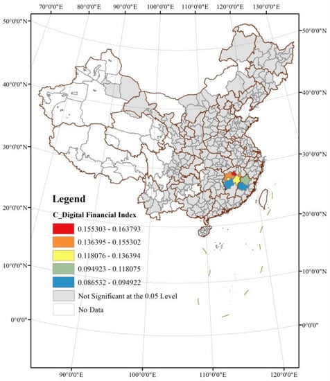 With the rapid development of information technology, digital finance has gradually become a supplement to the traditional financial system in China. Innovative financial services, especially booming technological financial services, provide a new opportunity for the growth of SMEs [], and a full range for each enterprise’s innovation activities to provide financial services is one of the purposes of financial innovation []. Theoretically, SMEs can use P2P lending platforms, such as Jingdong Finance and Ant Financial (two well-known technology and financial service companies in China), to effectively reduce the service cost of loans, thus eliminating the restrictions of traditional financial institutions. LGEs need financing to support high-intensity internal innovation activities to gather in areas with easy access to digital finance services. Therefore, this article proposes the following hypothesis.
