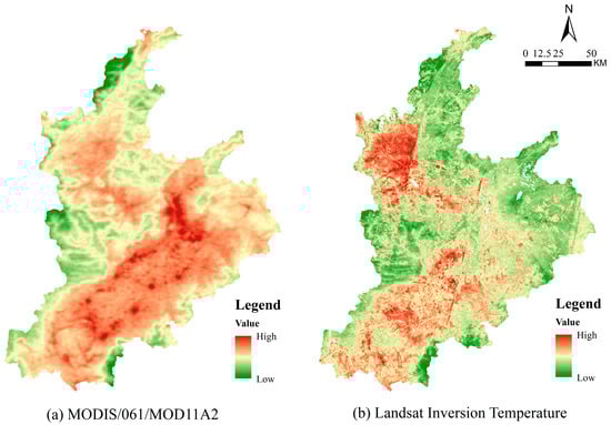 Comparison of LST from MOD11A2 and Landsat Inversion in 2020.