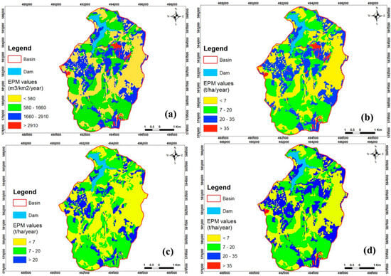 - Tangestani, M.H. Comparison of EPM and PSIAC models in GIS for erosion and sediment yield assessment in a semi-arid environment: Afzar Catchment, Fars Province, Iran. J. Asian Earth Sci. 2006, 27, 585–597. [Google Scholar] [CrossRef]