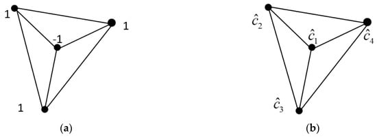 Let be the -axis coordinates of the vertex in . Referring to Equation (2), an integer can be randomly selected to encrypt with the public key .