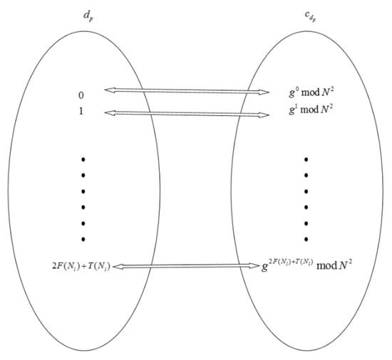 where denotes the encryption function. Due to the nature of the Paillier cryptosystem, for the same plaintext , different ciphertexts can be obtained by choosing different . After decryption, different ciphertexts can be restored to the same plaintext , which ensures the security of the ciphertext.
