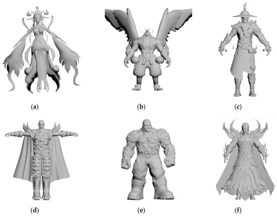 Six tested 3D models. (a) Fairy. (b) Boss. (c) Solider. (d) Devil. (e) Thing. (f) Lord.