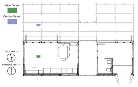 The measurement of the test building was conducted between 17 May 2020 (Sunday) and 18 September 2020 (Friday) in Gainesville city, Florida, United States. The building chosen for air quality monitoring is mechanically conditioned throughout the year, and the windows are closed to meet the American Society of Heating, Refrigerating, and Air-Conditioning Engineers (ASHRAE) Standard 62.1-2019 []. The laboratory building mainly functions as an office space with a 321 sq. ft floor area coupled with a single ducted air handling unit, which can provide a PM2.5 removal efficiency of 25% []. The standardized US EPA protocol for characterizing IAQ in large office buildings is followed to reduce measurement uncertainty [,]. A four-month indoor and outdoor air quality measurement was carried out with 10 min sampling intervals for 24 h continuously. Two US EPA (Air Quality Sensor Performance Evaluation Center) qualified monitors (Air Quality Egg, Version-2018) were used to measure the concentration of indoor and outdoor PM2.5, PM10, and NO2, as well as relative humidity and temperature (RHT) [,,]. The basic specifications of the monitor are shown in Table 1. The indoor monitor was placed about 3.6 feet above the floor, 1.5 feet away from an interior wall. Outdoor measurement was conducted simultaneously with indoors. A weatherproofed monitor was set up 5 feet above the surface of the deck outside the room (Figure 1).