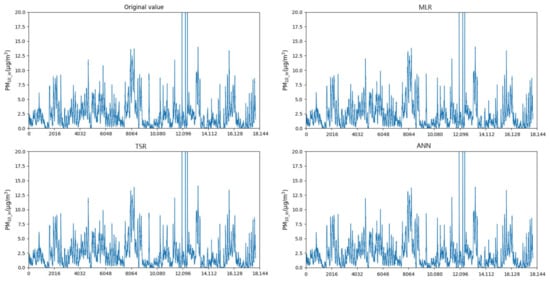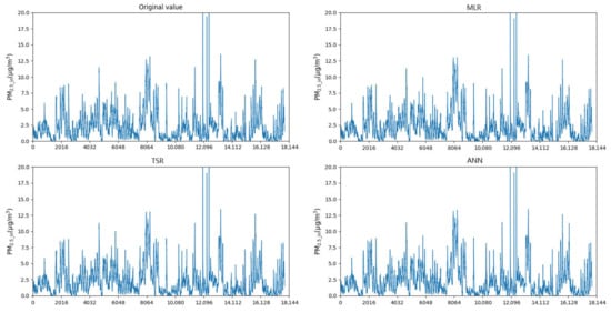 3.3. Cross-Comparison of the MLR, TSR, and ANN Models in the Prediction of the Indoor PM2.5 and PM10