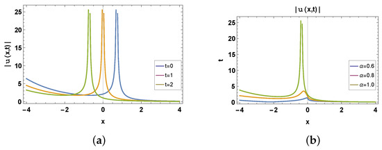 Here, we illustrate some of our obtained solutions using different kinds of graphs. The effect of the fractional order is also shown by means of the graphs (Figure 1, Figure 2 and Figure 3).