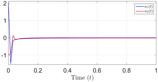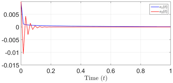 Based on Figure 3 and Figure 4, we can easily see the result of Theorem 4. In fact, the graphical representation provided in Figure 4 serves as visual evidence for the exponential stability of the error dynamics. The curve depicted in this figure exhibits a clear and consistent pattern of exponential convergence towards zero, which supports the conclusion drawn from Theorem 4. This observation provides strong empirical evidence to support the theoretical framework outlined in Theorem 4 and reinforces the notion that the error dynamics of the system are indeed exponentially stable.