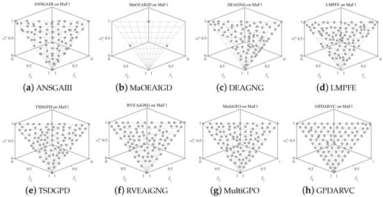 We compare GPDARVC with some representative MaOEAs, including ANSGA-III [], MaoEA-IGD [], DEAGNG [], LMPFE [], TS-DGPD [], RVEAiGNG [], and MultiGPO [].These comparison algorithms cover different types of multi-objective optimization algorithms, ranging from Pareto dominance-based to metrics-based and decomposition-based algorithms.