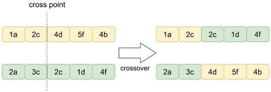As illustrated in Figure 6, during single-point crossover, a random position is selected on two chromosomes as the crossover point. Subsequently, the genes to the right of the crossover point on each chromosome are exchanged, resulting in the generation of two new offspring, thereby completing the crossover process.