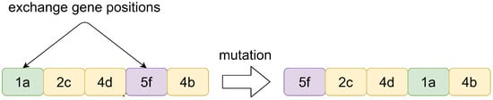 Mutation introduces randomness and diversity to help the algorithm escape local optima. Exchange mutation is selected as the mutation operator. All individuals in the population undergo mutation with a certain probability.