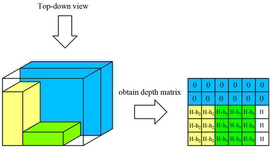 The generation and loading of the item wall are carried out within the remaining space in the container according to specific rules. Depending on the orientation of the item wall, it can be divided into XZ wall, YZ wall, and XY wall, denoted as the set , as shown in Equation (6):