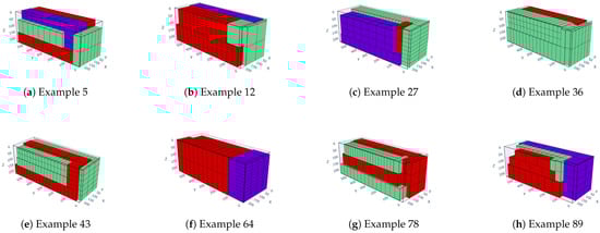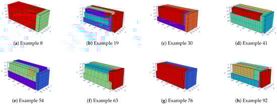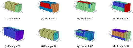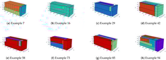 The selected test data consist of five categories, BR1 to BR5, from Bischoff and Ratcliff’s instances. The types of boxes are 3, 5, 8, 10, and 12, with the dimensions of the container determined to be 587 cm × 233 cm × 220 cm, in accordance with international standards. Eight instances were randomly selected from the five categories, and each instance was tested five times. The maximum space utilization rate of the selected instances was chosen as the test result.