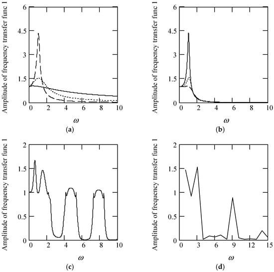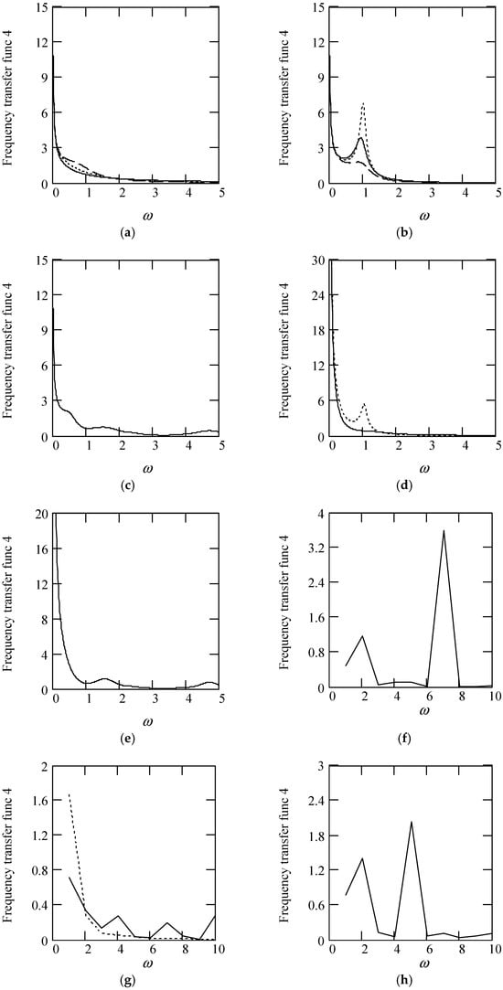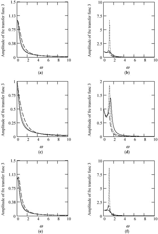 - The analytical expressions of frequency transfer functions of seven types of multi-fractional vibrators, which are addressed in Theorems 9, 19, 29, 40, 51, 62, and 73, respectively.