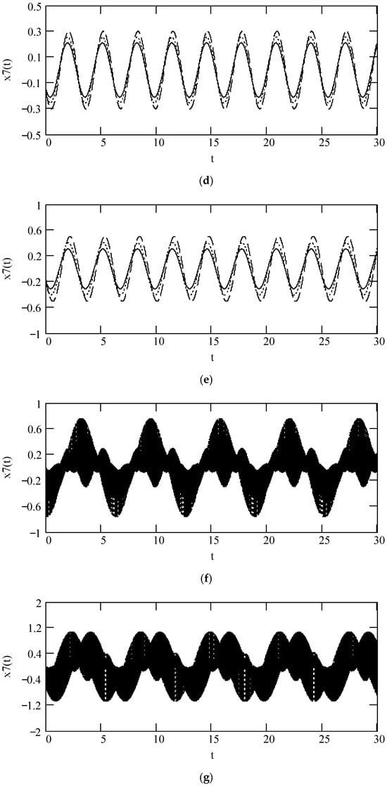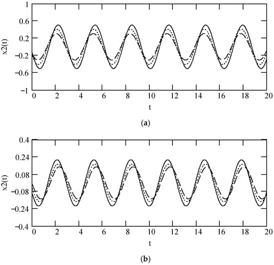There are three research shortcomings in the field of fractional vibrations. The first is that research works, such as those on the responses of fractional vibrations, are usually in numerical computations, see, e.g., [,,,,,,,,,,,,,,,,,,,,,,,,,,,,,,,,,,,,,,,,,,,,,,,,,,,,,,,], to mention a few. The analytical expressions are rarely reported, with the author’s previous work being among the few to report on these expressions [,,]. The second is that reports regarding the multi-fractional vibrators in the forms of (1)–(7) below