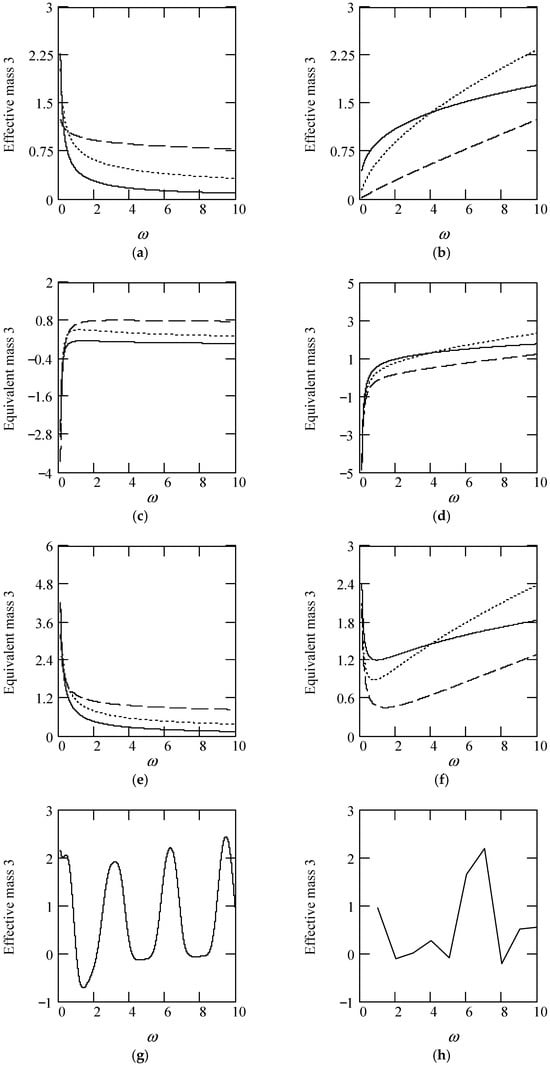 - The analytical expressions of equivalent masses of seven types of multi-fractional vibrators, which are given by Theorems 3, 13, 23, 33, 44, 55, and 66, respectively.