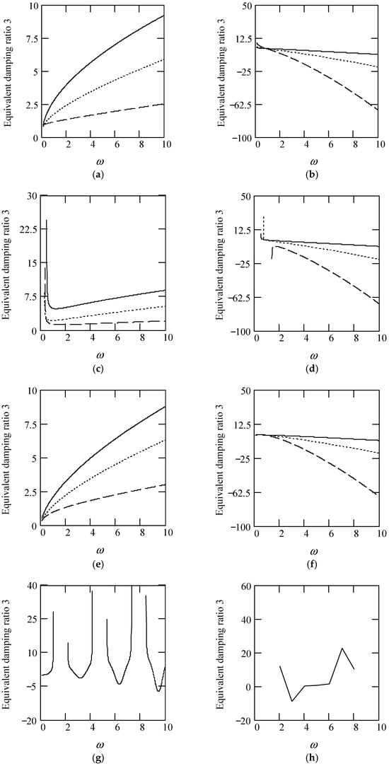 3.2.3. Equivalent Damping Ratio of Type 1 Multi-Fractional Vibrator