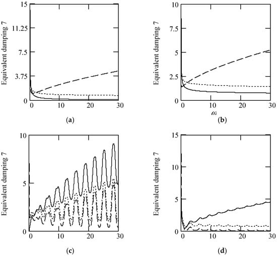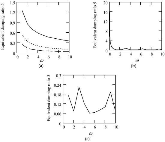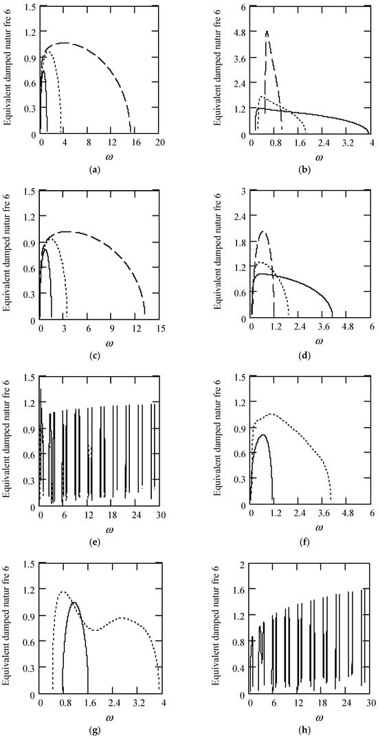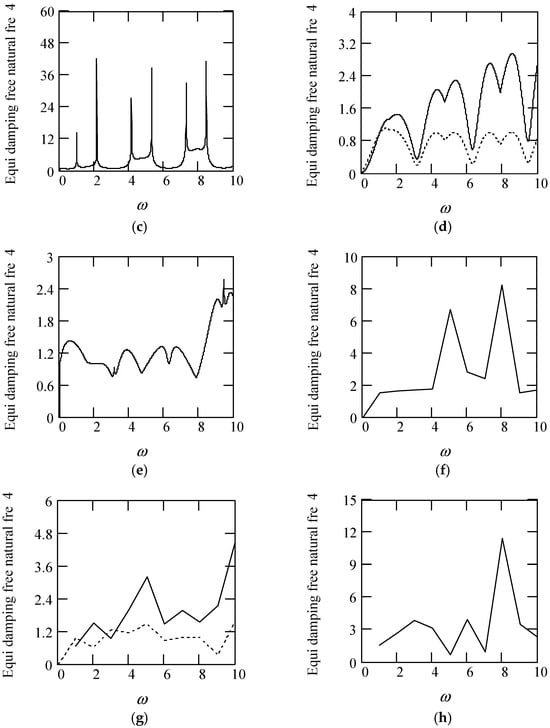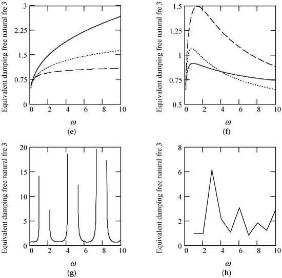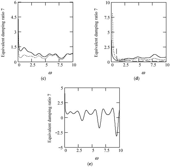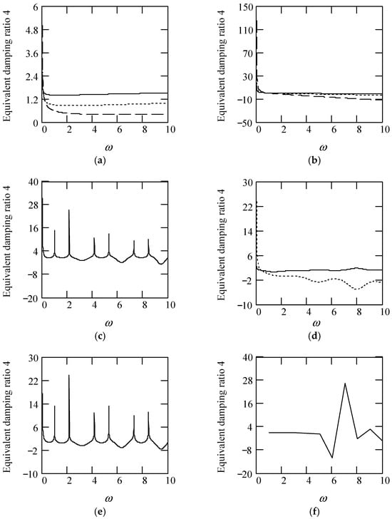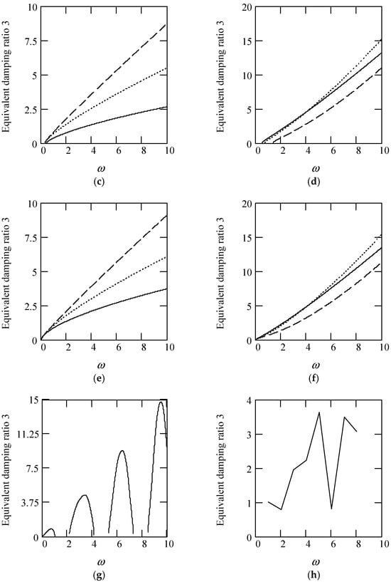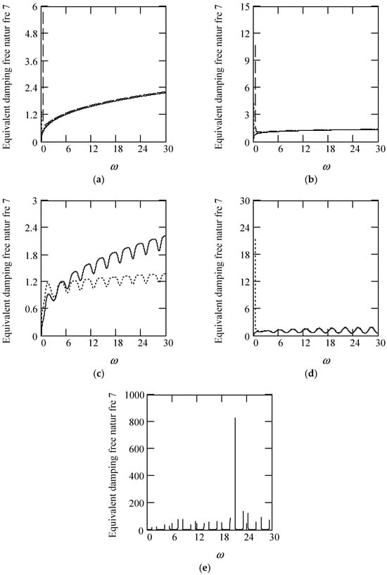 - The analytical expressions of equivalent damping ratios of seven types of multi-fractional vibrators, which are expressed in Theorems 5, 15, 25, 36, 47, 58, and 69, respectively.