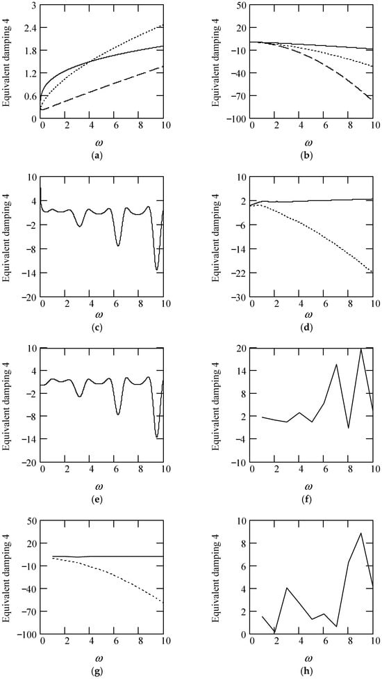 - The analytical expressions of equivalent dampings of seven types of multi-fractional vibrators, which are, respectively, represented by Theorems 4, 14, 24, 34, 45, 56, and 67.