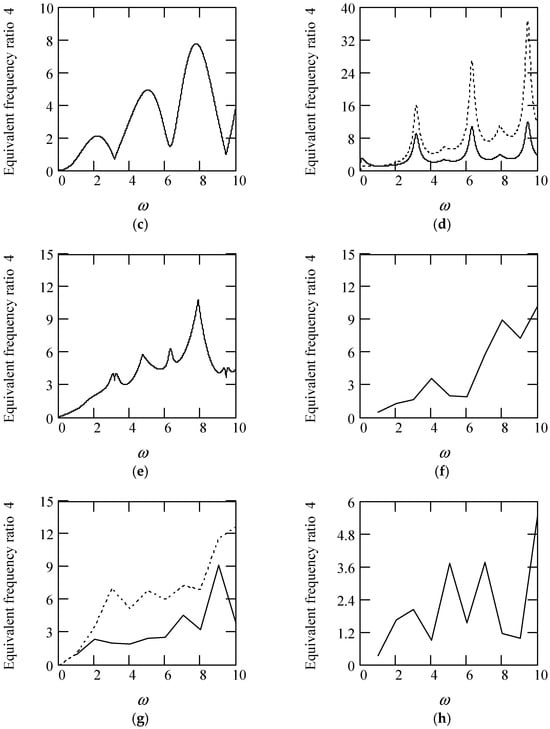 3.2.6. Equivalent Frequency Ratio of Type 1 Multi-Fractional Vibrator