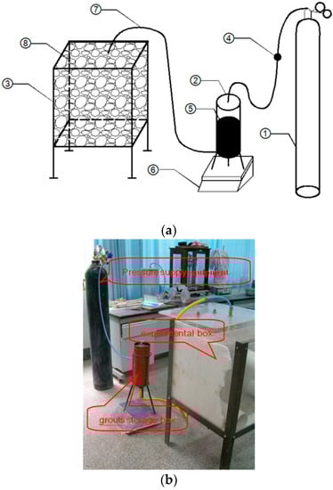 The indoor experimental device of grouting used in this paper can be observed in Figure 2.