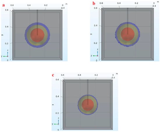 Relying on the multi-physics field coupling software COMSOL Multiphysics and Darcy’s law, three-dimensional numerical calculation programs for the mechanism (Equation (14)) are obtained by using secondary-development programming technology. The programs can not only simulate the penetration diffusion process of the time-dependent power-law fluid in gravel soil, but also ensure that the penetration diffusion process conforms to the theoretical basis of laminar flow.