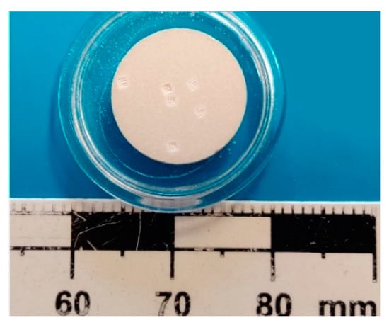 All the crystal samples were photographed and divided into three parts: 1/3 was kept in crystal form (Figure 3) and the other 2/3 were milled with a mortar grinder Retsch Mortar Grinder RM 200 (Retsch GmbH, Haan, Germany) and sifted with a Retsch Test Sieve (Retsch GmbH, Haan, Germany) to <125 μm of grain size. From the sifted sample, ½ was pressed with the hydraulic press Specac Atlas Manual (Specac Ltd., Orpington, England) at 10 tons during 45 s into 13 mm diameter pellets (0.6 to 0.7 g) (Figure 4). The other ½ was sent to the certificated laboratory ActLabs, in Ancaster, ON, Canada, to be analyzed using inductively coupled plasma mass spectrometry (ICP-MS). To control the quality of the Actlabs results, we also sent (with other names) two duplicates (one of a spodumene crystal and another of a mixture of the spodumene and quartz), two blanks (hydrothermal quartz from the Panasqueira mine) and a Standard Reference Materials (SRM): NIST SRM 182—Petalite.