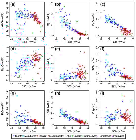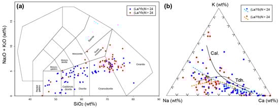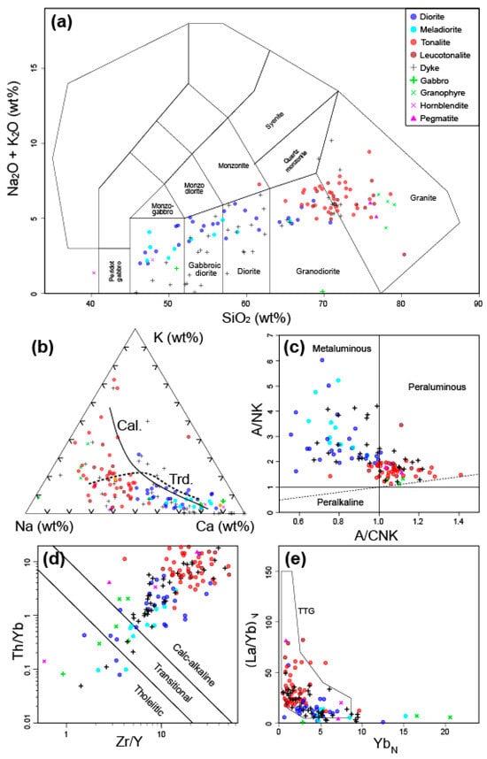 - Ross, P.S.; Bédard, J.H. Magmatic Affinity of Modern and Ancient Subalkaline Volcanic Rocks Determined from Trace-Element Discriminant Diagrams. Can. J. Earth Sci. 2009, 46, 823–839. [Google Scholar] [CrossRef]