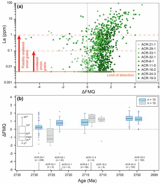 - Madon, B.; Mathieu, L.; Marsh, J.H. Oxygen Fugacity and Volatile Content of Syntectonic Magmatism in the Neoarchean Abitibi Greenstone Belt, Superior Province, Canada. Minerals 2020, 10, 966. [Google Scholar] [CrossRef]
