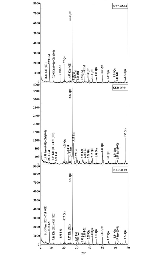 - Brown, G.; Brindley, G.W. X-ray diffraction procedures for clay mineral identification. In Crystal Structure of Clay Minerals and Their X-ray Identification; Brindley, G.W., Brown, G., Eds.; Mineralogical Society: London, UK, 1980. [Google Scholar]