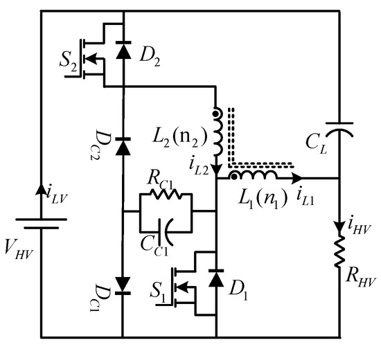 Figure 3 shows the proposed CICC--BDC with single voltage clamping, which is an improvement over the CI--BDC, proposed in []. For simple analysis, the CI can be represented mathematically as an ideal transformer inclusive of magnetizing inductances (Lm1 and Lm2) and leakage inductances (Lk1 and Lk2). The turns ratio and coupling coefficients of the ideal transformer are given by