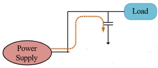 Among all, coupled inductor (CI) based topologies have received more attention to achieve high conversion gain due to their merits, such as compactness and high power density in both charging and discharging modes [,]. Moreover, such topologies can mitigate the disadvantages of both isolated and non-isolated BDC, such as voltage stresses, high voltage diversity factor with huge duty cycle, and high cost. However, there are still few more problems with CI--BDC converters, such as leakage energy due to the coupled inductor, causing voltage stress during the turn off process, apart from complexity in circuit design. To address this issue, the resistor-capacitor-diode (RCD) voltage-clamp technique is proposed. Apart from that, the Voltage-Clamp (VC)—CI--BDC converter has been proposed in []. However, in all these topologies, a capacitor is placed at the output side [,,,,,,,,]. As the system in energized, the voltage levels increase to the rated value, thus enabling an inrush of current in uncharged output capacitors. The inrush current magnitude flowing inwards to the capacitors is proportional to the rate of change of voltage, as illustrated in Equation (1)