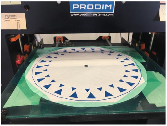 One of the samples with 3D printed objects, still placed on the printing bed, is depicted in Figure 5. Due to the sufficiently large printing bed, it was possible to print the whole pattern in one printing session.