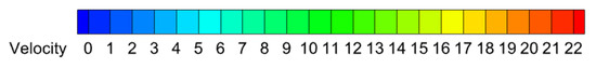 From Figure 4, it can be seen that the simulation results in this article are basically consistent with the results in reference [41], and the error of the induced maximum wind speed at each incoming wind speed is within 3%, thus verifying the accuracy of plasma simulation in this article.