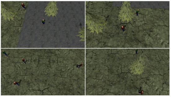 - Random movement: This scenario included six actors performing a random path, crossing paths with another actor in several cases.