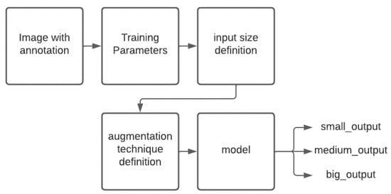 For our custom YOLOv4, we decided to keep the head as it is and make predictions in three scales similar to YOLOv4, but we make a significant reduction to the model’s backbone. The backbone we use has 88 layers instead of 138 of the original YOLOv4 resulting in 4.7 million parameters, where there is a reduction of 60 million in the number of parameters between the two models. Figure 4 shows the flow chart of the training procedure of our network.