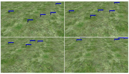The proposed system was implemented in C++ and python. For the drone’s guidance and control, a Robot Operating System (ROS) [] was utilized. ROS is an open-source robot operating system, designed to handle process management and scheduling. The system was evaluated in the Gazebo [] simulator using the PX4 autopilot []. Gazebo is an open-source, powerful physics engine, capable of simulating 3D dynamic multi-robot environments.