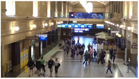 - Dendorfer, P.; Rezatofighi, H.; Milan, A.; Shi, J.; Cremers, D.; Reid, I.; Roth, S.; Schindler, K.; Leal-Taixé, L. MOT20: A benchmark for multi object tracking in crowded scenes. arXiv 2020, arXiv:2003.09003. [Google Scholar]