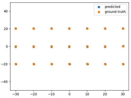 In Figure 27, we see the results of the static objects moving cameras scenario. In this scenario, the actors remain static and the drones are moving aiming to detect the total number of actors in the area. The blue circles represent the predictions of the global tracker regarding the positions of the actors and the orange ones the actual location of the actors. The results indicate that in that scenario the global tracker performed really well, managing to distinguish correctly the observation and provide accurate results regarding the location of the actors.