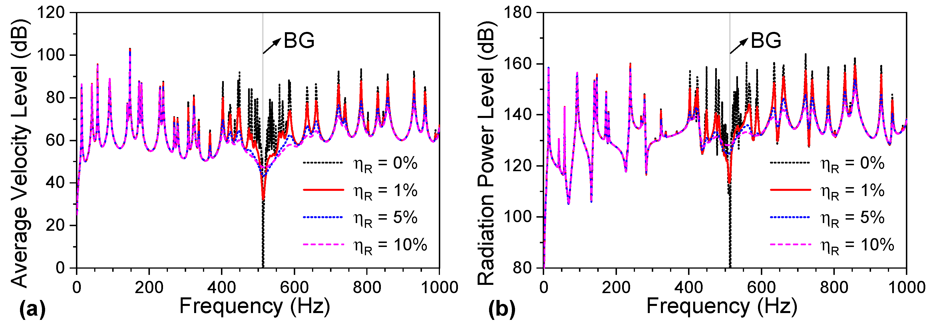 - Guo, Z.W.; Pan, J.; Sheng, M.P. Vibro-acoustic performance of a sandwich plate with periodically inserted resonators. Appl. Sci. 2019, 9, 3651. [Google Scholar] [CrossRef]