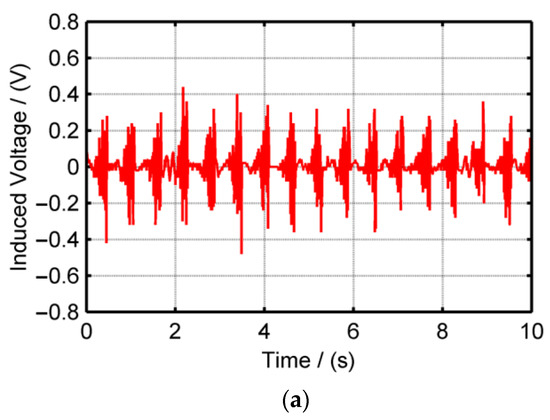 With the increase in bpm, the voltage amplitude increases, and exhibits a more fundamental sine. Harmonic analysis is shown in Figure 8b. The main harmonic component is the three-time harmonic, when bpm = 5 mm, and the total harmonic distortion (THD) is about 34%; when bpm = 9 mm, the THD reduces to only 2.0%.