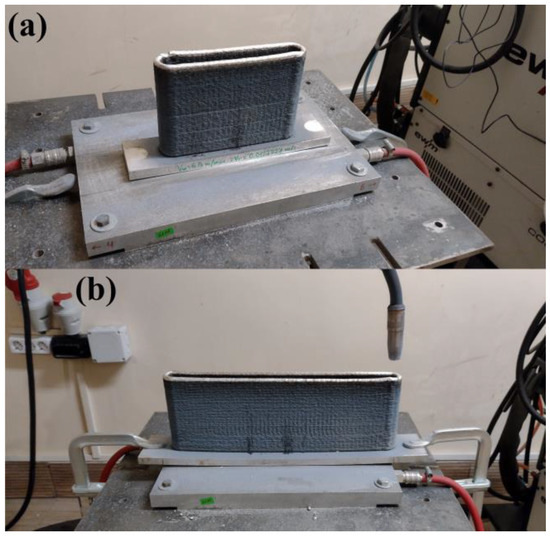 Wire and arc additively manufactured specimens: specimen A (a) and specimen B (b).