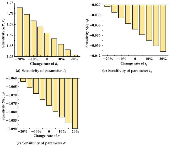 When the parameters , and are changed by ±20% from the reference values, the change in sensitivity is shown in Figure 2.