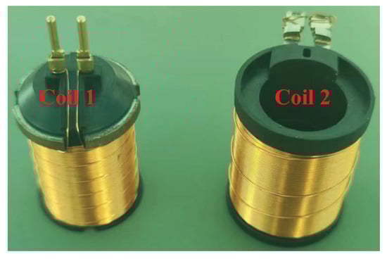 In this paper, two electromagnet coils are selected as representatives to test the accuracy of the calculation method proposed in this paper. The two coils have the same structure as that in Figure 1, but the size and winding turns are completely different, reflecting the adaptability of the calculation method. The specific structures are shown in Figure 7.