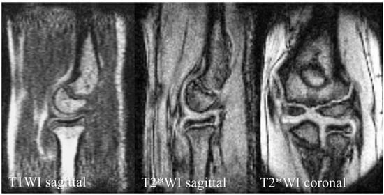 We can clearly identify bone morphology with T1WI sagittal images and articular cartilage morphology with T2*WI sagittal and coronal images.