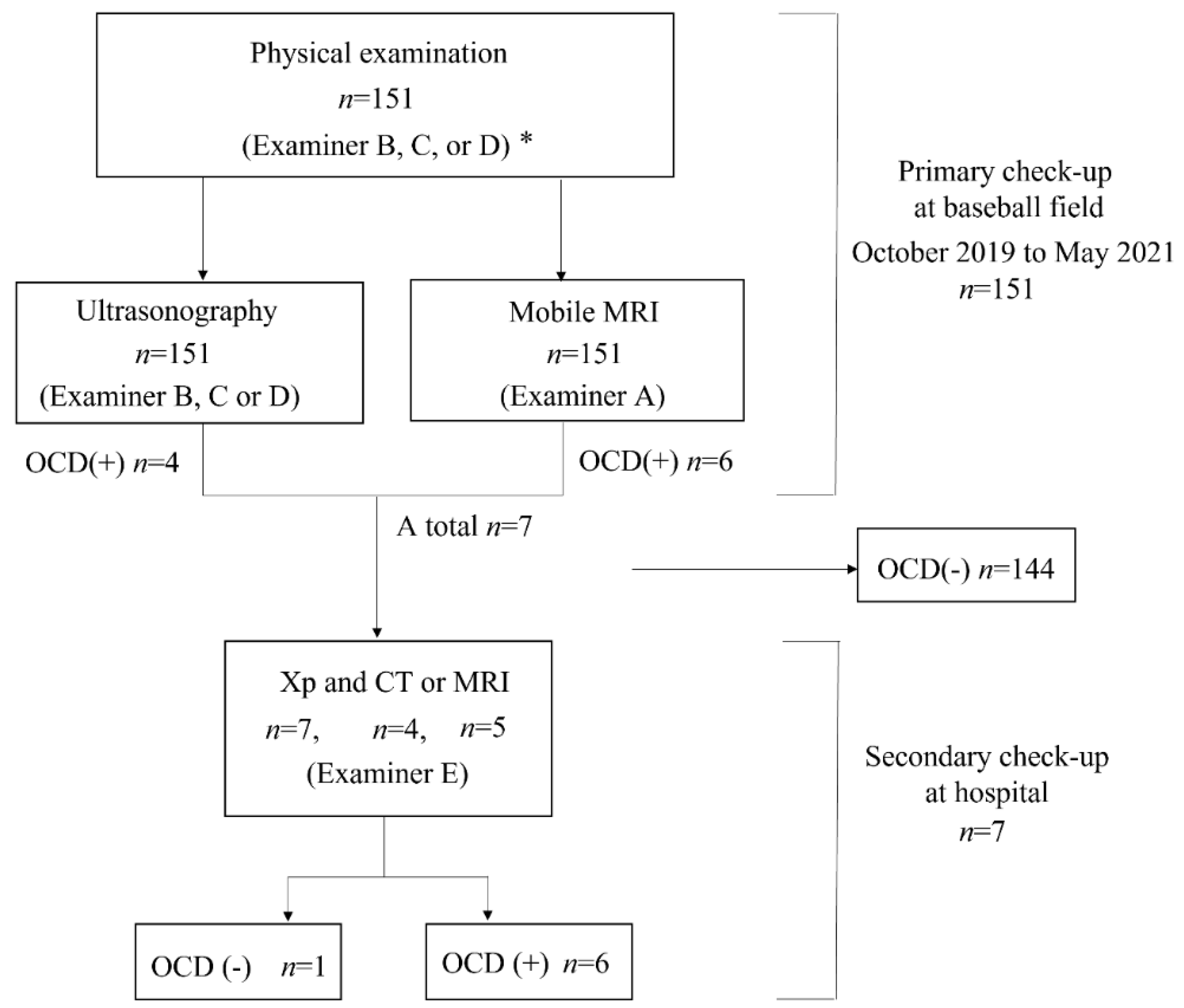 Ikeda K, Okamoto Y, Ogawa T, Terada Y, Kajiwara M, Miyasaka T, Michinobu R, Hara Y, Yoshii Y, Nakajima T, et al. Use of a Small Car-Mounted Magnetic Resonance Imaging System for On-Field Screening for Osteochondritis Dissecans of the Humeral Capitellum. Diagnostics. 2022; 12(10):2551. https://doi.org/10.3390/diagnostics12102551