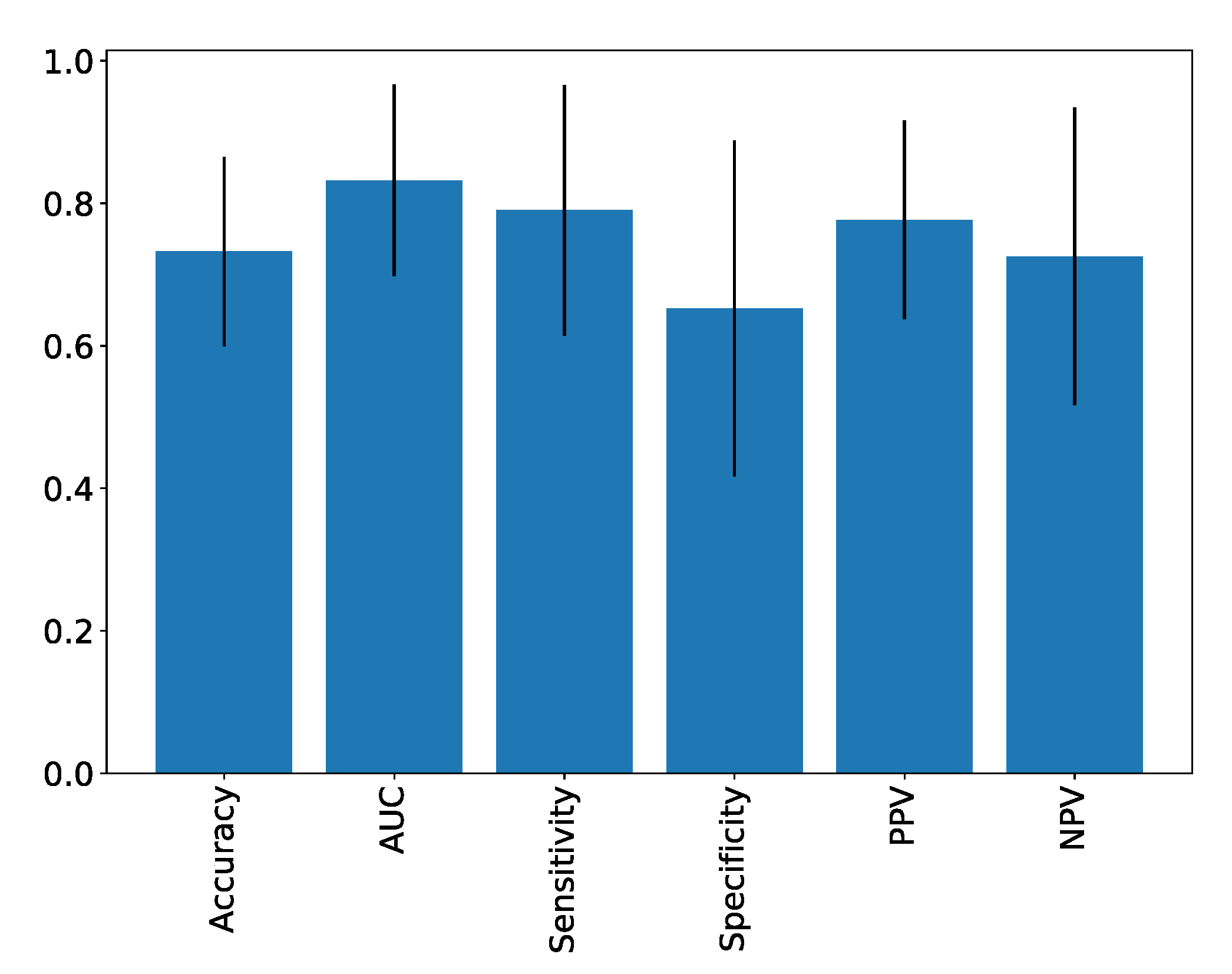 | Accuracy | AUC | Sensitivity | Specificity | PPV | NPV | |