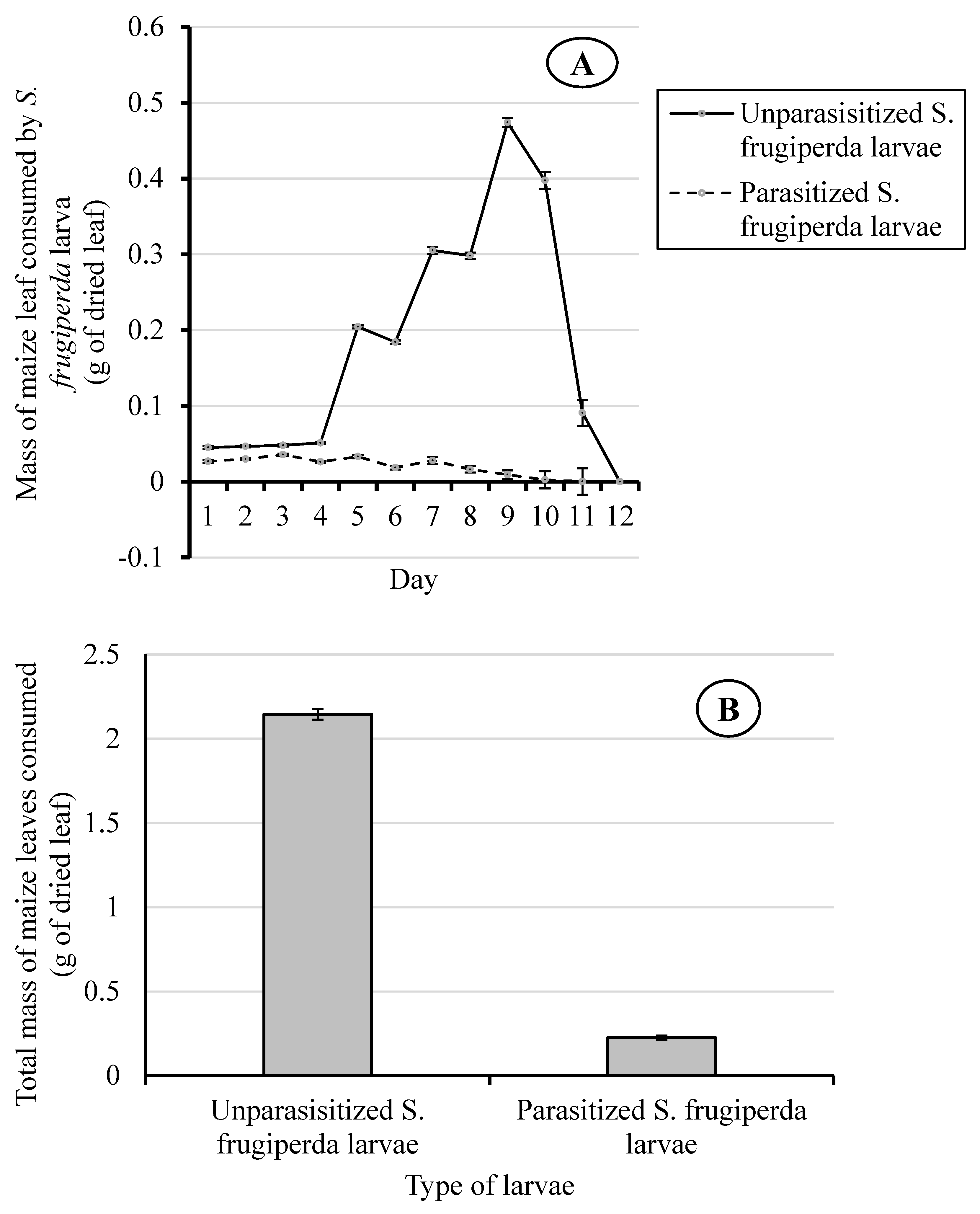 Evidence of Leaf Consumption Rate Decrease in Fall Armyworm, Spodoptera frugiperda, Larvae Parasitized by Coccygidium luteum